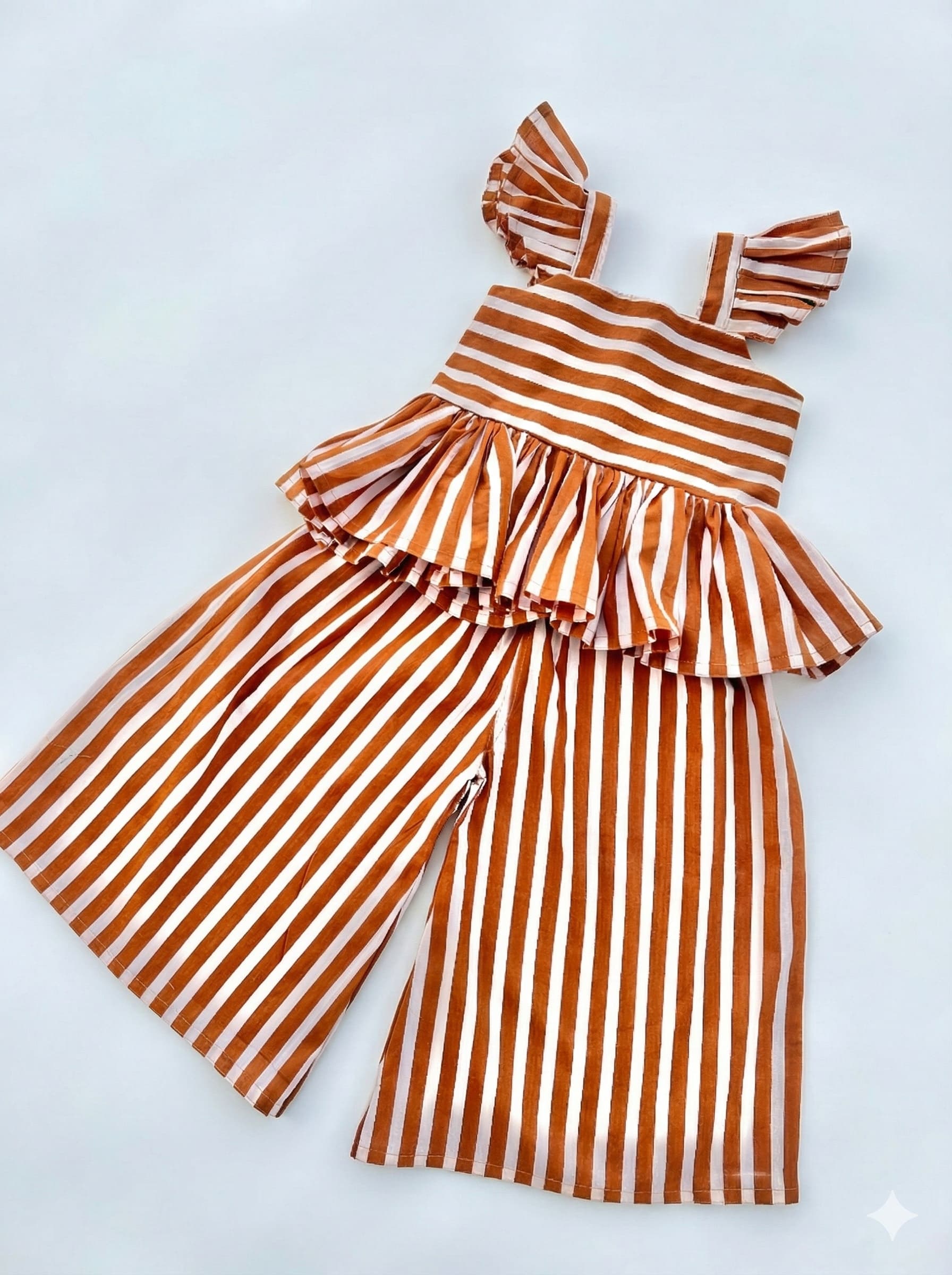Be the first to review “Brown white strips print plazo set”