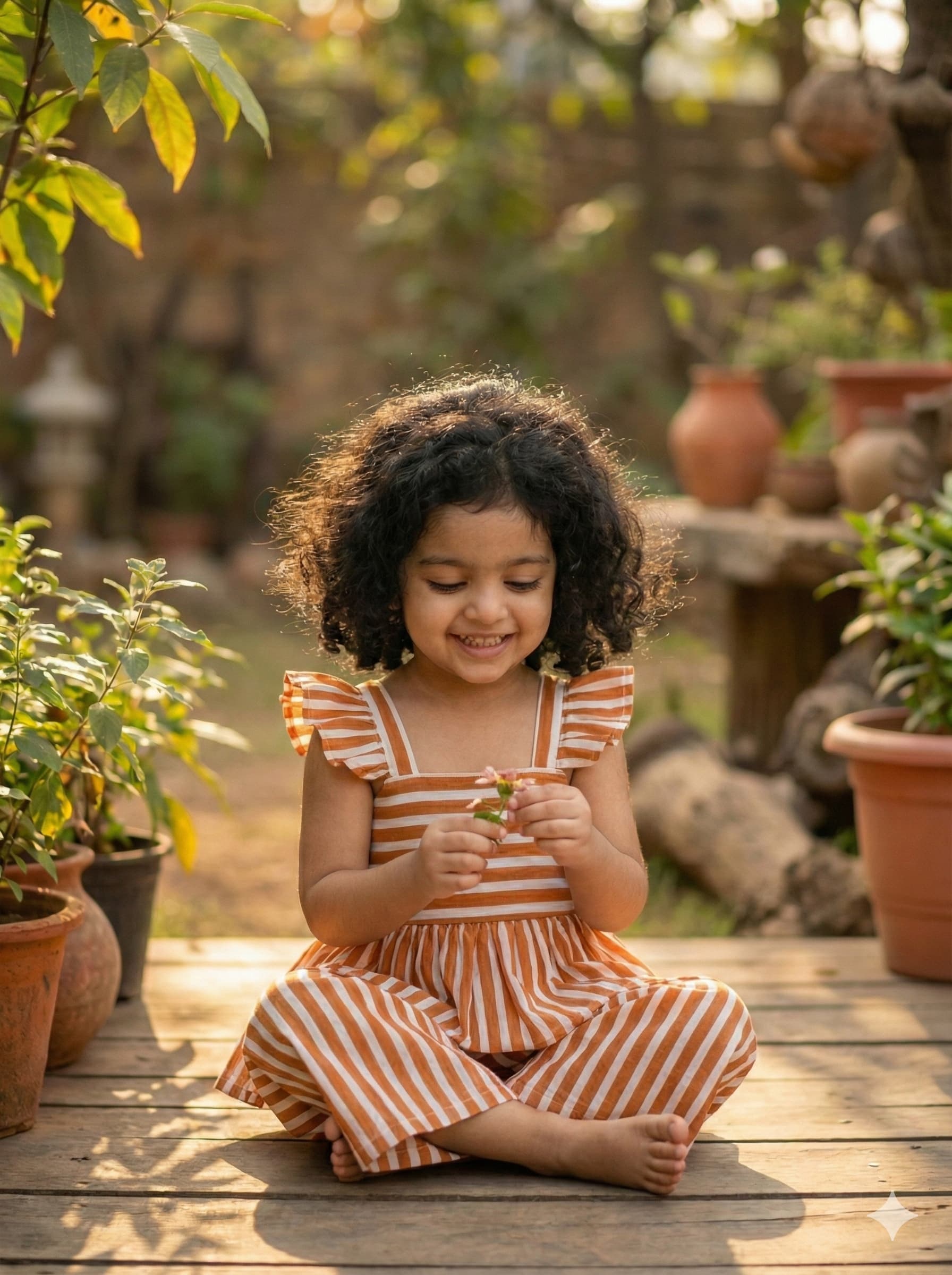Brown white strips print plazo set
