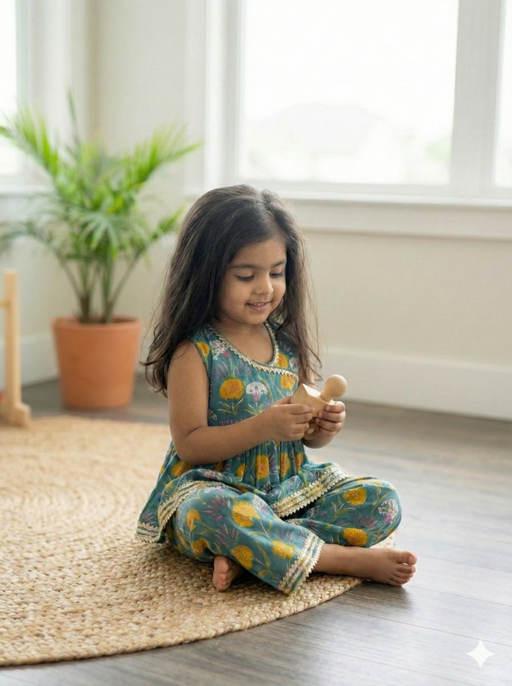 Elevate your ethnic wardrobe with our pure cotton Plazo set. Designed for ultimate comfort, this outfit boasts lightweight, breathable fabric that keeps you comfortable throughout the day. Whether it’s a festive celebration or a casual gathering, this Plazo set will have your little one look effortlessly chic.