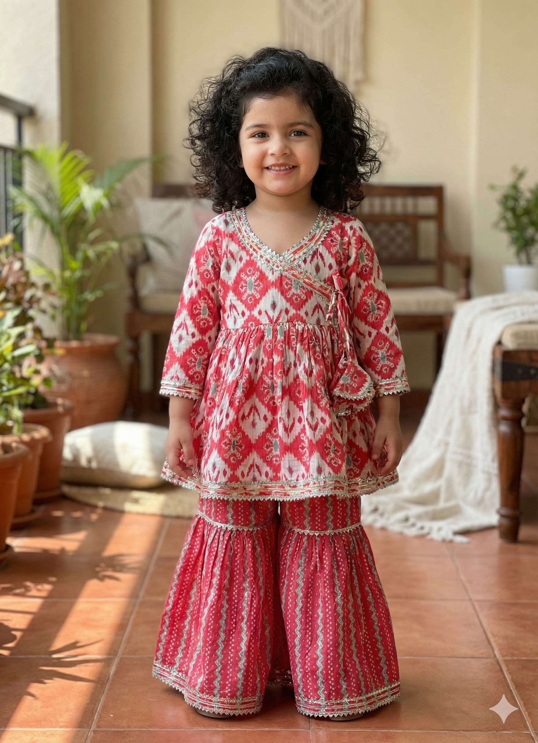Elevate your ethnic wardrobe with our pure cotton Sharara set. Designed for ultimate comfort, this outfit boasts lightweight, breathable fabric that keeps you comfortable throughout the day. Whether it’s a festive celebration or a casual gathering, this sharara set will have your little one look effortlessly chic.