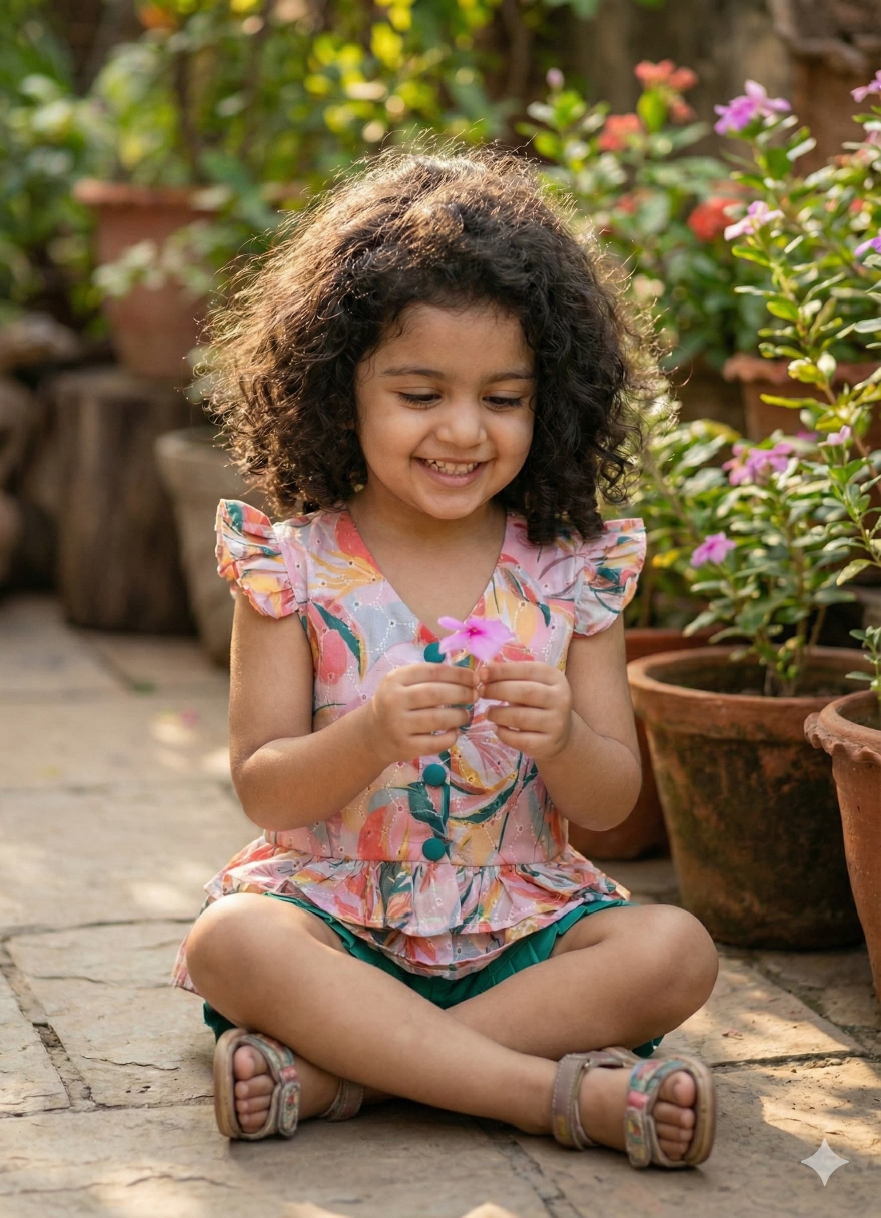 Color: Peach top and green shorts