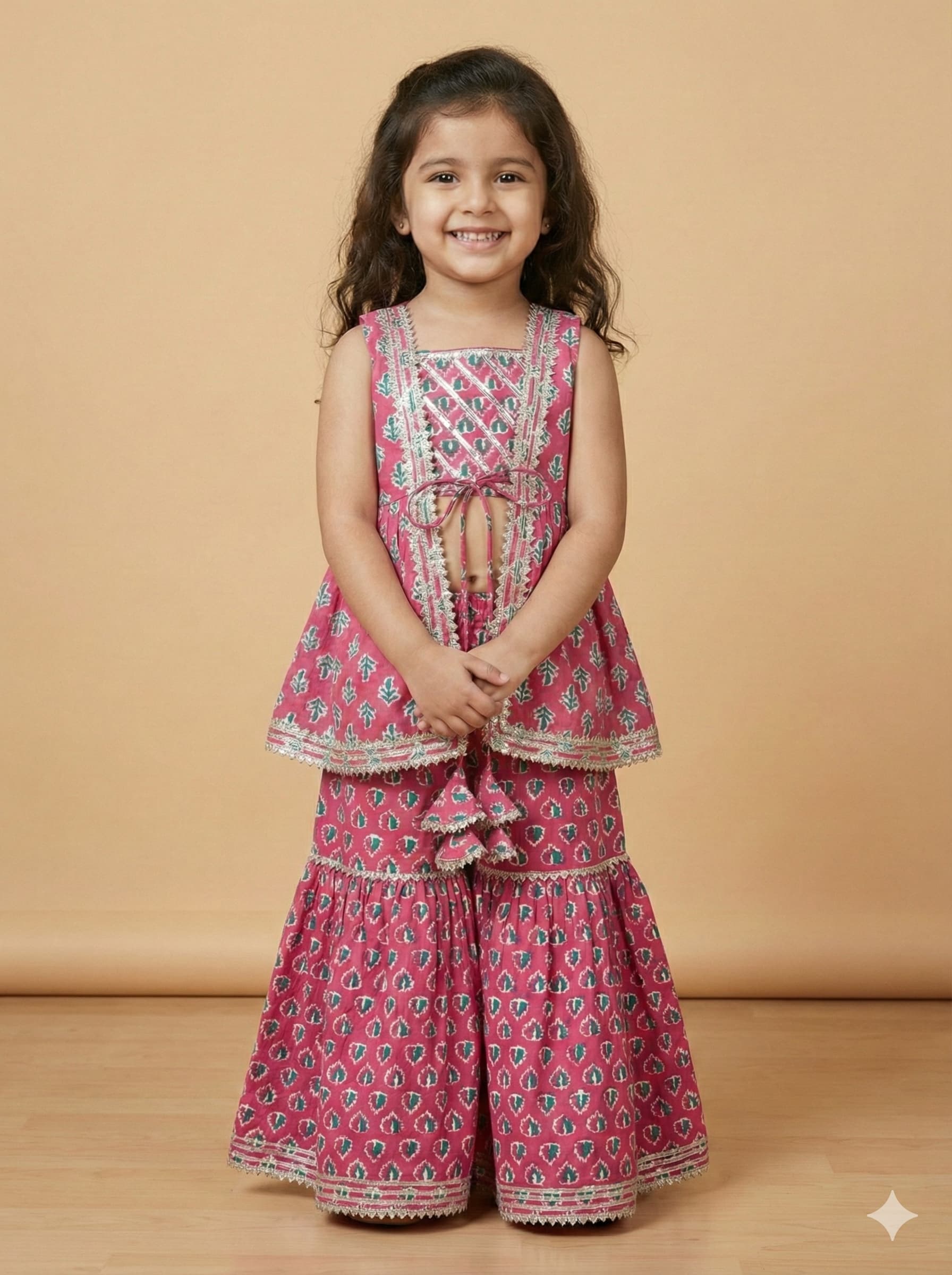 Elevate your ethnic wardrobe with our pure cotton Sharara set. Designed for ultimate comfort, this outfit boasts lightweight, breathable fabric that keeps you comfortable throughout the day. Whether it’s a festive celebration or a casual gathering, this sharara set will have your little one look effortlessly chic.