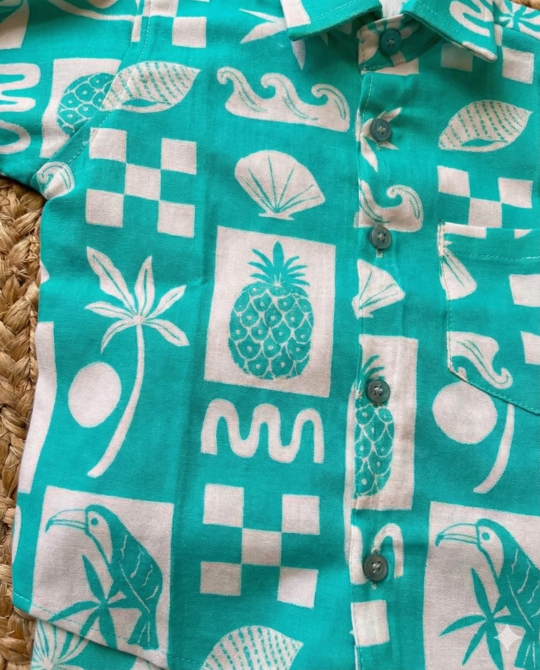 Be the first to review “Sea green printed jute cotton coord set”