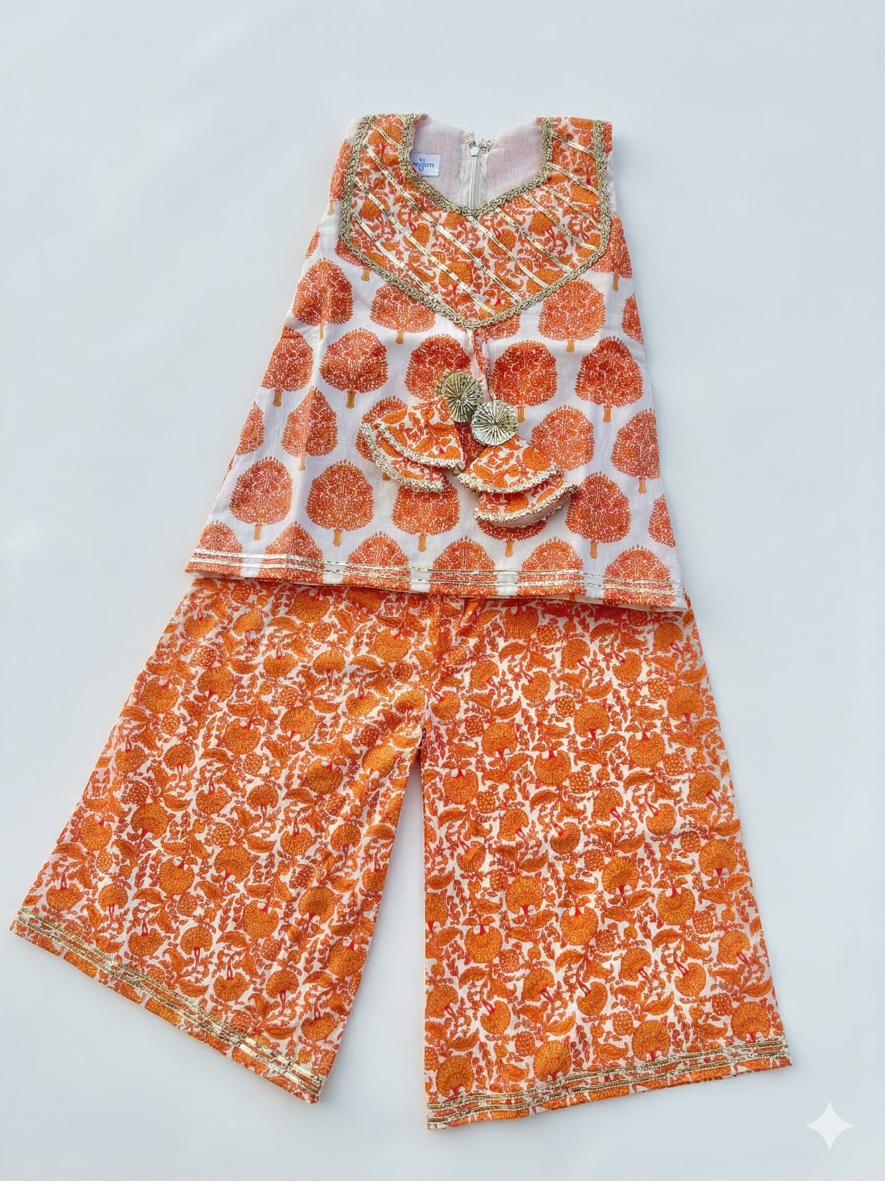 Elevate your ethnic wardrobe with our pure cotton Sharara set. Designed for ultimate comfort, this outfit boasts lightweight, breathable fabric that keeps you comfortable throughout the day. Whether it’s a festive celebration or a casual gathering, this sharara set will have your little one look effortlessly chic.